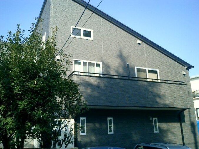 木造2階建ての落ち着いた外観。グレーを基調としたスタイリッシュなデザインで、清潔感があります。周辺は車の通りも少なく、安心してお散歩できる環境です。
